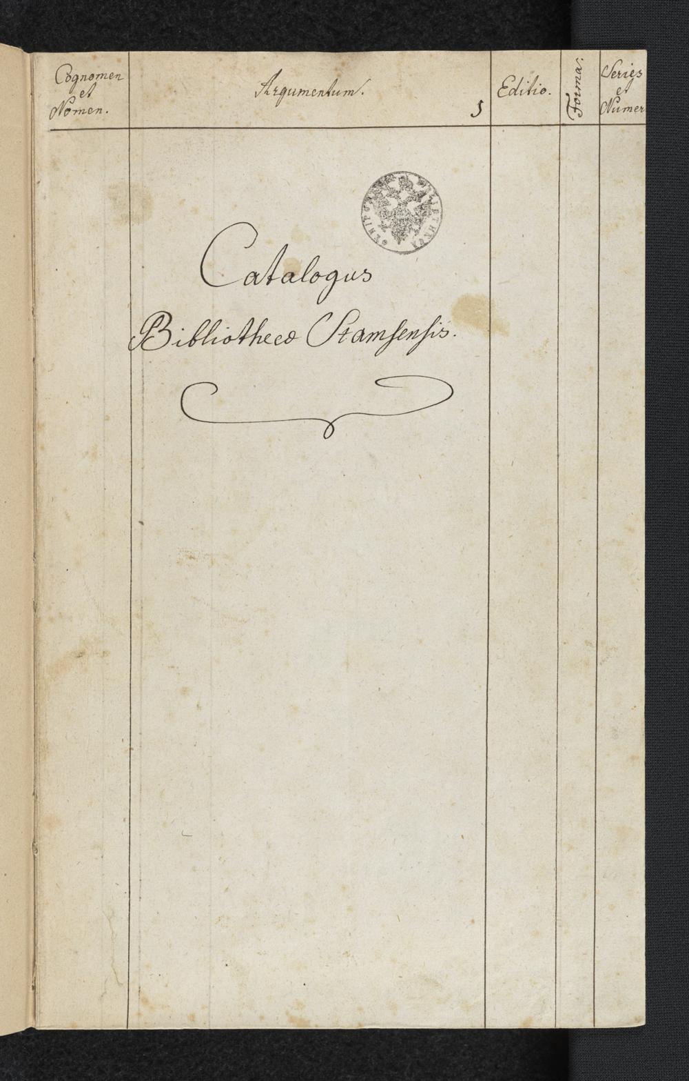 Catalogus Bibliothecae Stamsensis